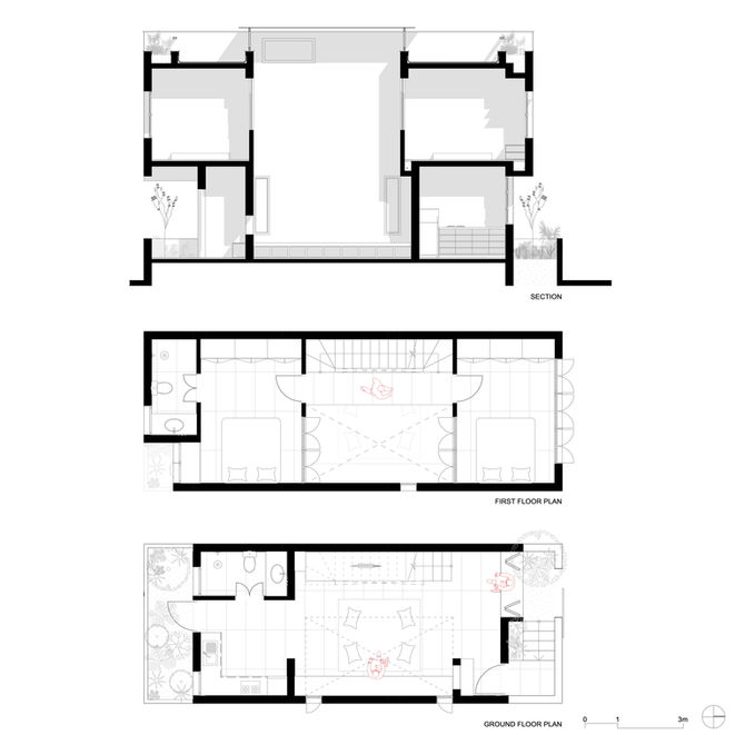 In this design, we embraced the beauty of simplicity. With a narrow plot, we turned to the sky and volume, letting them guide our vision. The house flows around a central courtyard, a modern interpretation of the traditional heart of a home. This space ties everything together, offering both visual and physical connections to the rest of the house. Designed with flexibility, each area can adapt to different moments of the day. Rooted in the principles of the Tube House, this design redefines spatial efficiency, transforming limitations into opportunities. Every inch is meticulously crafted to foster adaptability, light, and ventilation, reshaping the dialogue on habitability in dense urban fabrics.